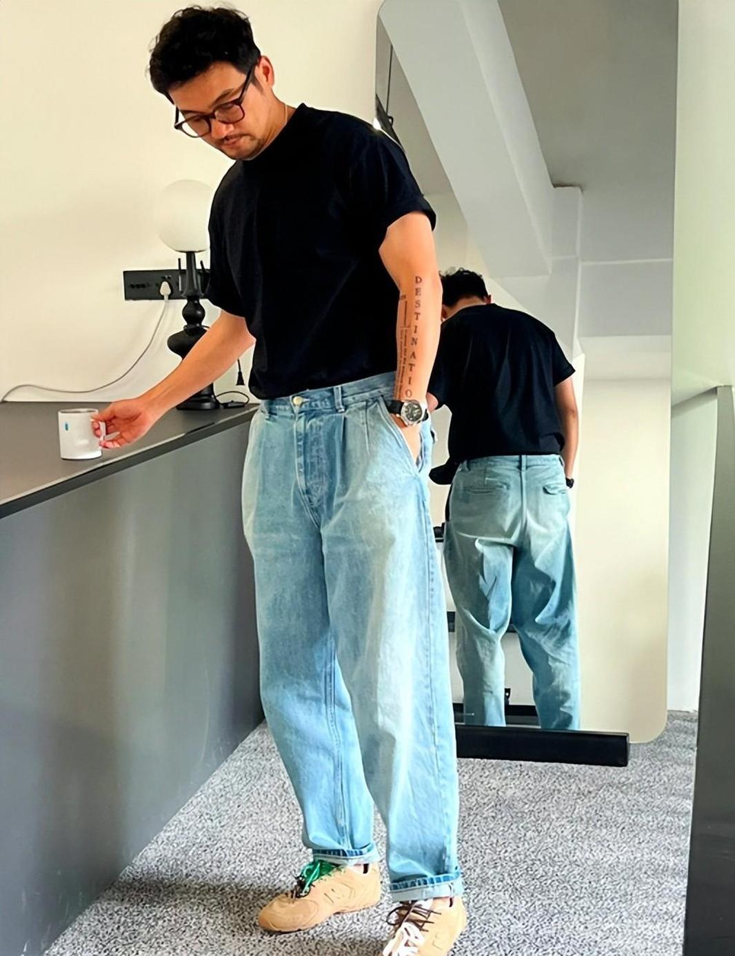 牛仔裤作为服装界的元老,不挑年龄和风格,基础款中的百搭款。对于中年男人来说,选择的版型不宜过于修身、紧身,容易暴露身材短板,还像个精神小伙;强调裤腿余量,以直筒、宽腿裤型为主,包容身材更加百搭。