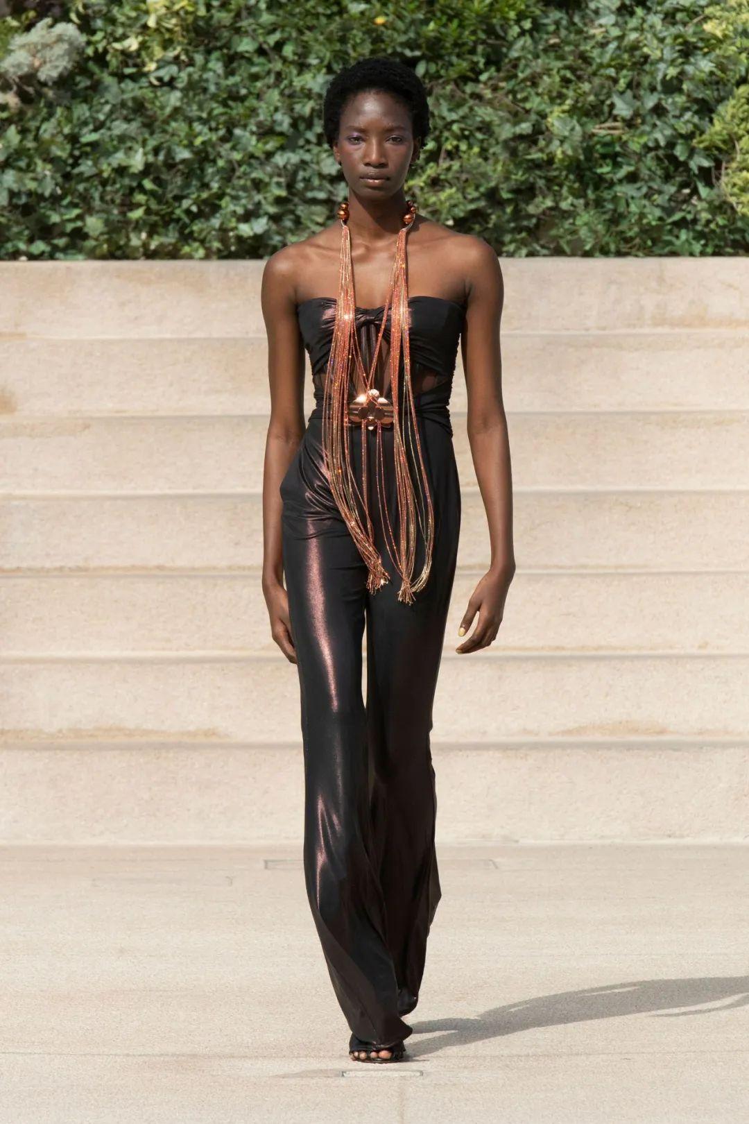 连体裤作为一种时尚的宣言和表达,无论是独特的剪裁、意想不到的材质、前卫的细节设计,或是别出心裁的搭配方式,都让它在秀场中成为了一个与众不同的时尚风向标,引领着潮流的发展方向。